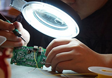 Инженер сервис центра проводит ремонт: заменяет неисправную часть работоспособной фирменной частью